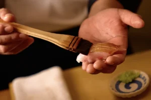 Omakase means “chef’s choice,” Your experience begins the moment you step into our intimate, elegantly designed restaurant. You’ll be seated at our chef’s counter, where you can watch the 95€ 15 course culinary magic unfold right before your eyes.